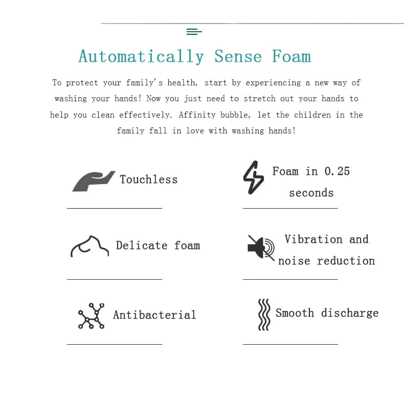 Manos libres y seguras: tecnologÃa de sensor que dispensa espuma automáticamente al detectar movimiento.