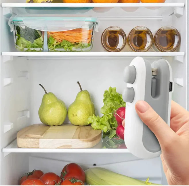 Su diseño compacto y recargable por USB elimina la necesidad de baterías desechables, ofreciéndote comodidad y facilidad de uso. Solo cierra la bolsa, sella y disfruta de alimentos herméticamente protegidos, prolongando su vida útil y evitando desperdicios.