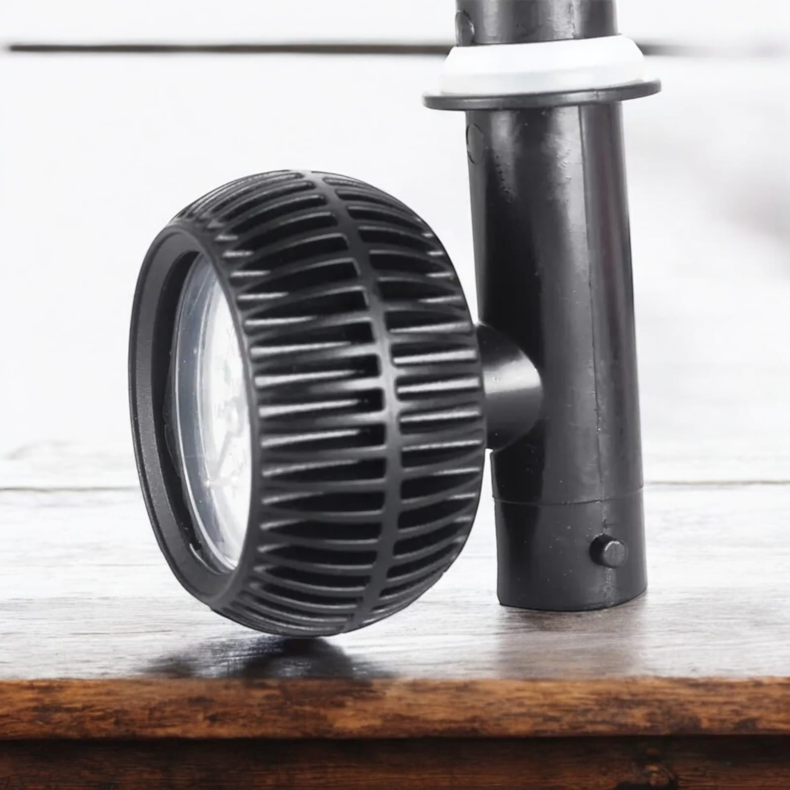 Nuestra bomba cuenta con un barómetro general que te permite controlar fácilmente la presión de tu equipo inflable. Esto garantiza un rendimiento óptimo y seguridad mientras remas en lagos serenos o surfeas las olas. ¡Nunca más tendrás que adivinar si tu kayak o paddleboard están bien inflados!